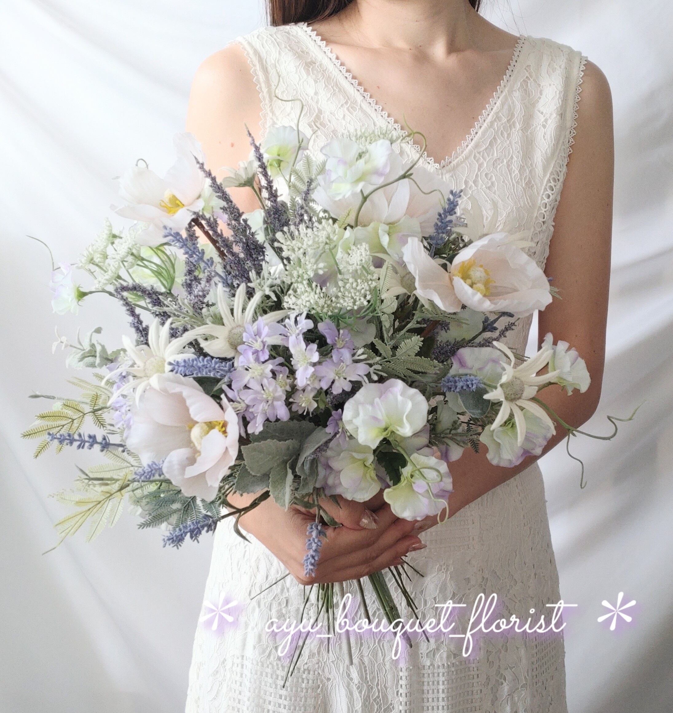 千日紅やラベンダーのブルーパープル系の小花達で